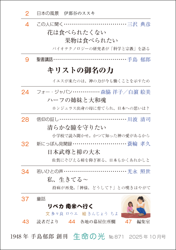 2025年9月25日 / 最終更新日時 : 2025年9月24日 Makuya-003 目次 『生命の光』871号 “Light of Life”【ミニ動画つき】 月刊誌『生命の光』“Light of Life”のお申し込みは、こちらをクリック FacebookX